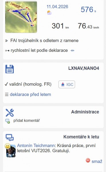 Do komentáře svého letu napište VUT2026. Krásnou sezónu všem.